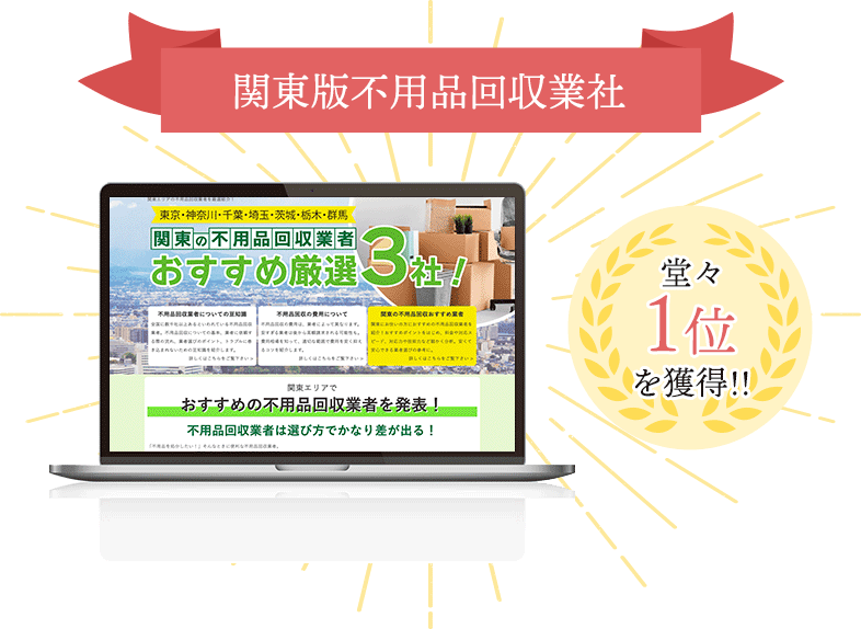 この度、「関東版不用品回収業社おすすめ厳選3社!」にて、おすすめ業者の1位を獲得いたしました。